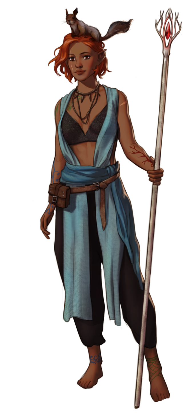 Scars: Too many to count, ask her about them. Notably missing the ends of her ears.
